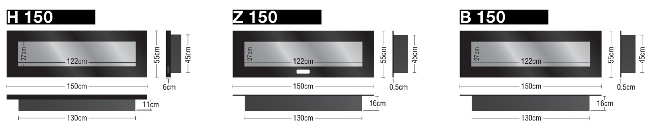 | ابعاد سری H شومینه 150 | 17*55*150 (سانتیمتر) |