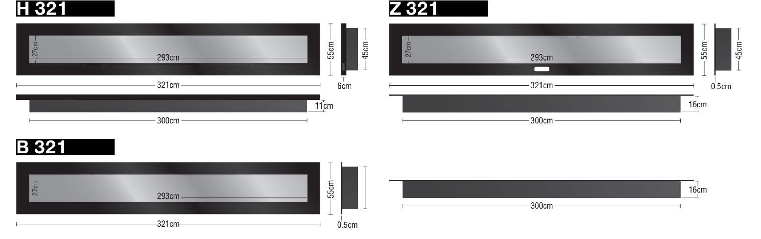 | ابعاد سری H شومینه 321 | 17*55*321 (سانتیمتر) |