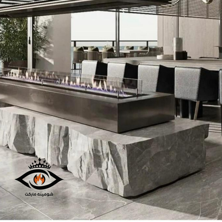 شومینه الکلی (اتانولی) مدرن | ورق استیل و مشکی | بدون دودکش